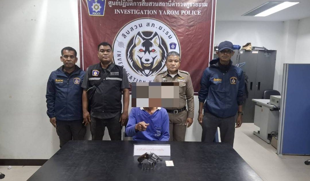 ได้ร่วมกันจับกุมตัว นาย(ก) พร้อมของกลางอาวุธปืนสั้น (ลูกโม้) ยี่ห้อ Smith and Wesson ขนาด .38 จำนวน 1 กระบอก และของกลางที่ 2 กระสุนปืนขนาด .38 จำนวน 5 นัด