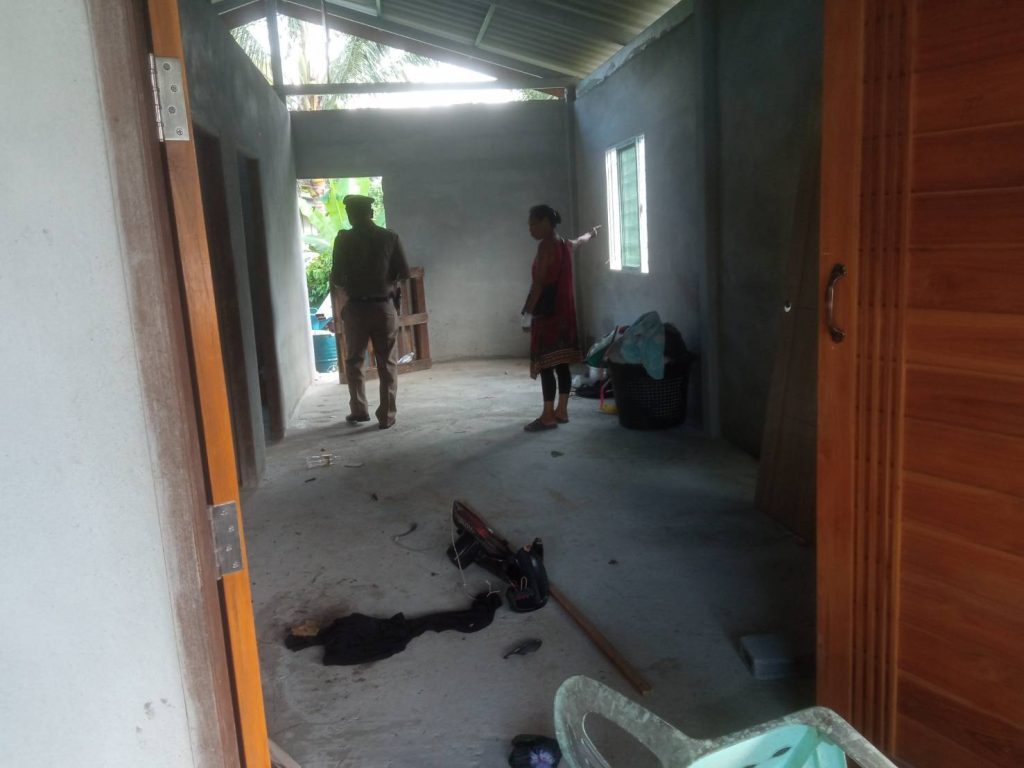พร้อมผู้ช่วยพนักงานสอบสวนเข้าตรวจสอบที่เหตุบุตรชายทำลายทรัพย์สินภายในบ้าน ณ บ้านเลขที่ 420 หมู่ที่ 6 (จันทรัตน์) ตำบลยะรม อำเภอเบตง จังหวัดยะลา