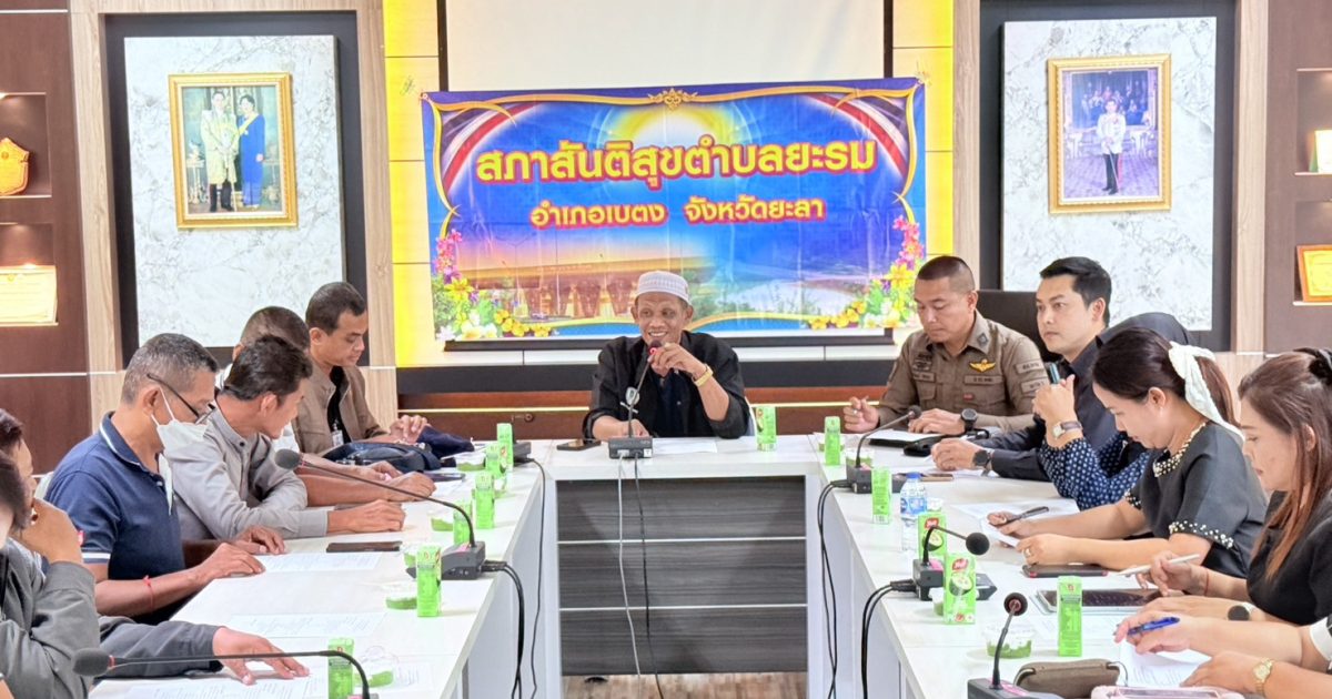 ร่วมประชุมสภาสันติสุขตำบลยะรม ณ ห้องประชุม รพ.สต.ยะรม ต.ยะรม อ.เบตง จว.ยะลา โดยมี นายมูฮัมหมัดกอรี กาเซ็ง กำนันตำบลยะรม เป็นประธาน