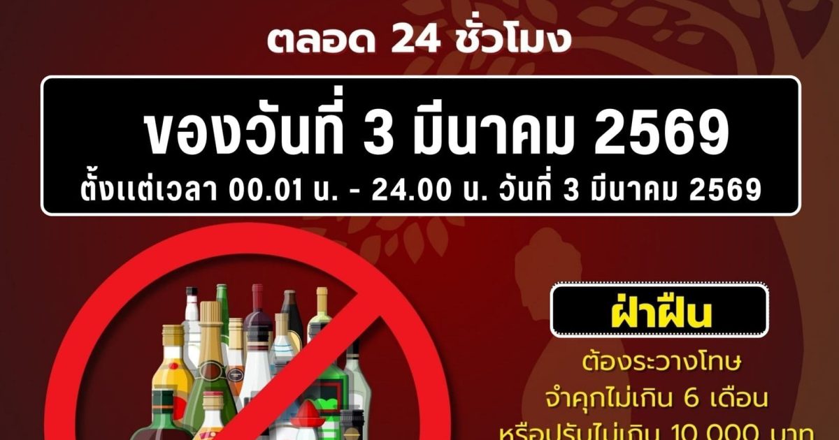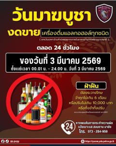วันมาฆบูชา งดขาย เครื่องดื่มแอลกอฮอล์ทุกชนิด 2 มีนาคม 2569 โดย yarom / ข่าวประชาสัมพันธ์ FacebookFacebookXXLINELine