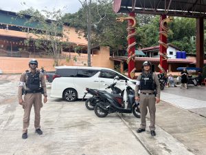 ผบ.หมู่(ป.)สภ.ยะรม พร้อมสายตรวจจราจร อำนวยความสะดวกนักท่องเที่ยว ณ สำนักสงฆ์จันทรัตน์ ต.ยะรม อ.เบตง จ.ยะลา