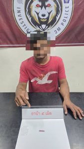รอง สว.สส.สภ.ยะรม ได้ร่วมกันจับกุมตัว นาย อ(นามสมมุติ) พร้อมของกลาง ยาเสพติดให้โทษประเภท 1 (ยาบ้าหรือเมทแอมเฟตามีน) ชนิดกลมแบนสีแดงประทับตรา WY จำนวน 5 เม็ด (บรรจุอยู่ในหลอดพลาสติกสีฟ้าใสปิดหัวท้ายด้วยความร้อน) น้ำหนักรวมภาชนะบรรจุประมาณ 0.59 กรัม โดยกล่าวหาว่า “มีไว้ครอบครองซึ่งยาเสพติดให้โทษประเภท 1 (ยาบ้าหรือแมทแอมเฟตามีน) โดยไม่ได้รับอนุญาต” สถานที่จับกุม ริมถนนเส้นทางหมู่บ้านราโมง ม.5 ต.ยะรม อ.เบตง จ.ยะลา