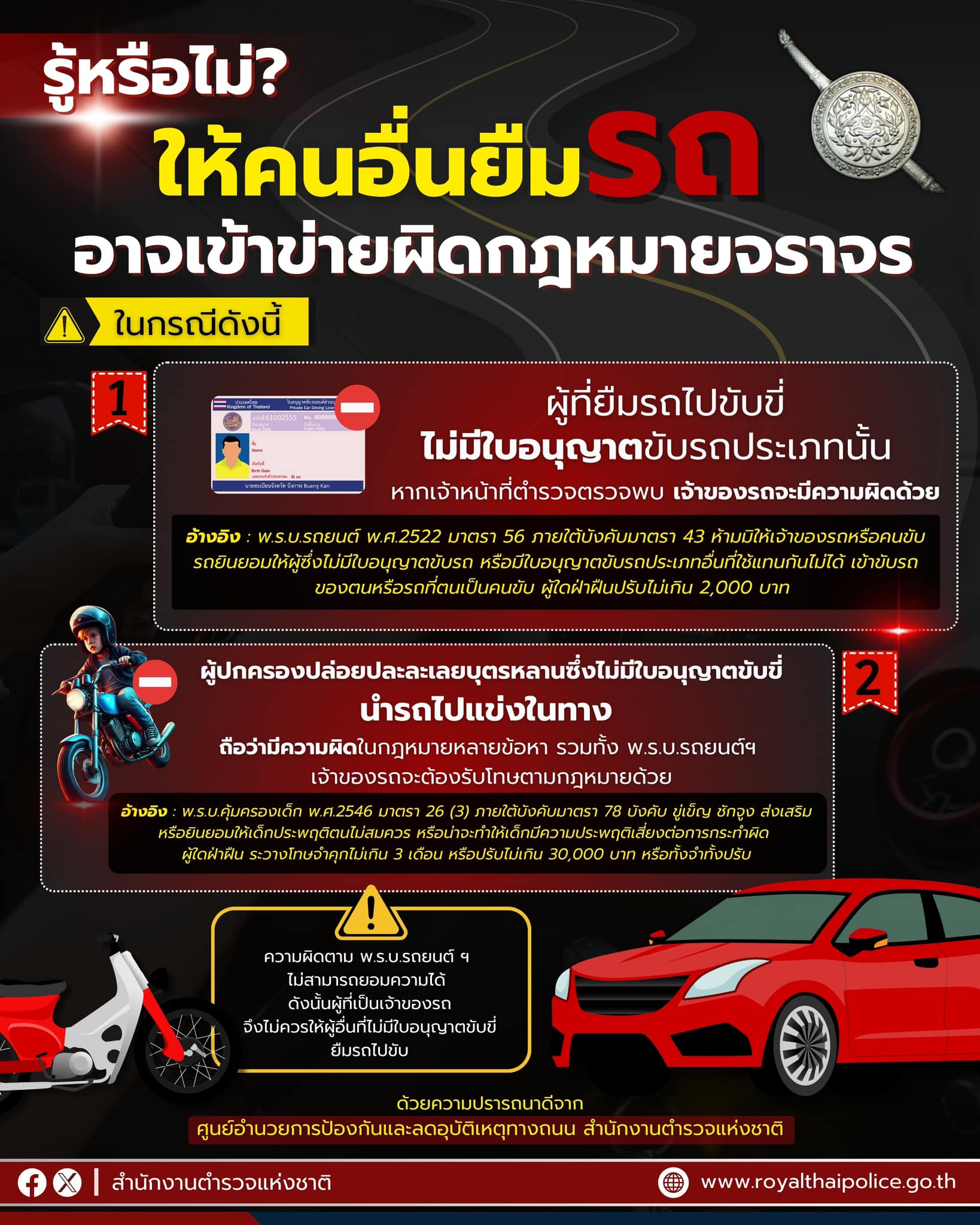 ให้ผู้อื่นยืมรถ อาจเข้าข่ายผิดกฎหมายจราจร เปิดเคสตัวอย่างไม่ได้ขับ แต่ถูกดำเนินคดีศูนย์อำนวยการป้องก