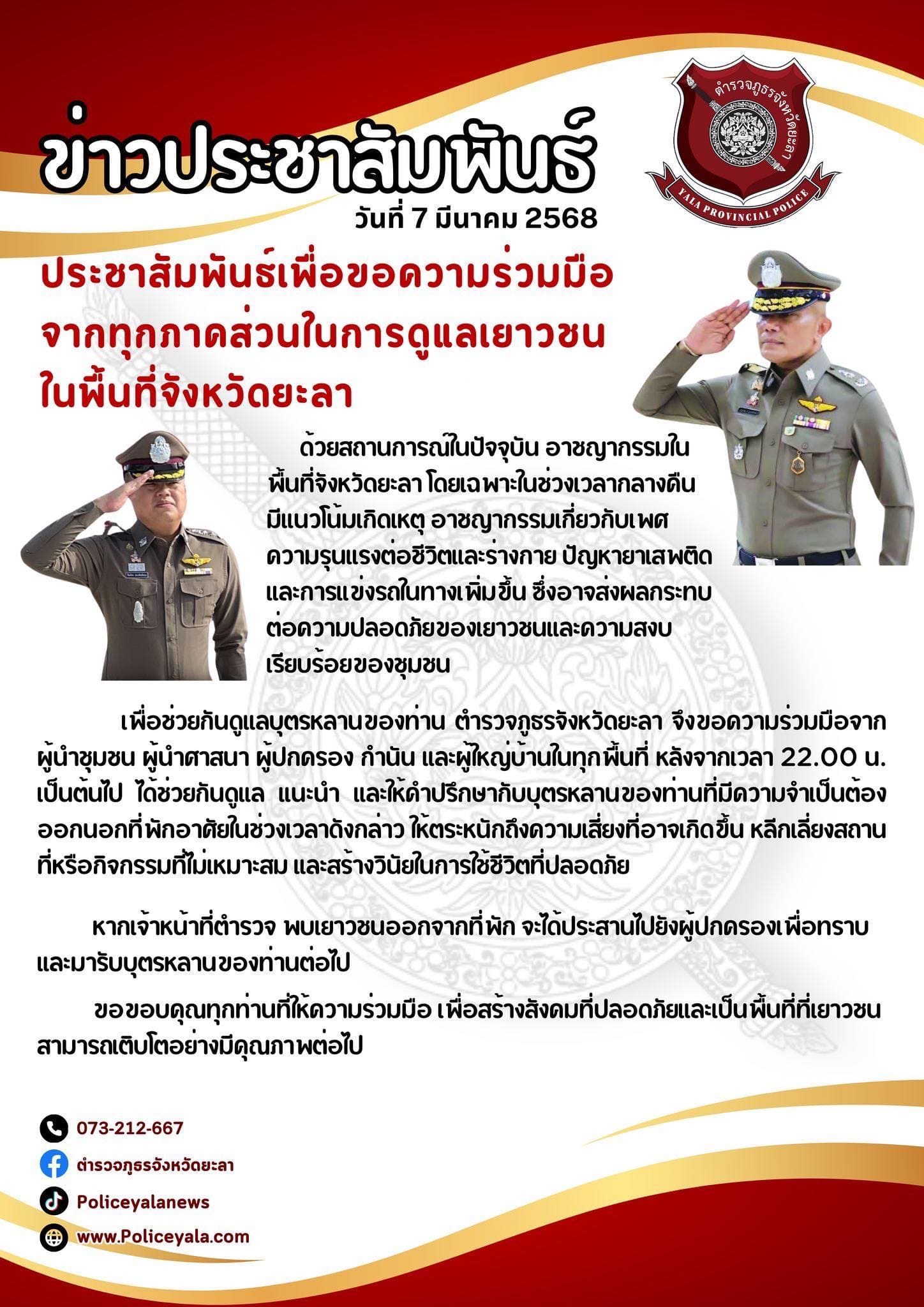 ประกาศจาก ตำรวจภูธรจังหวัดยะลา/สภ.ยะรม นะครับ