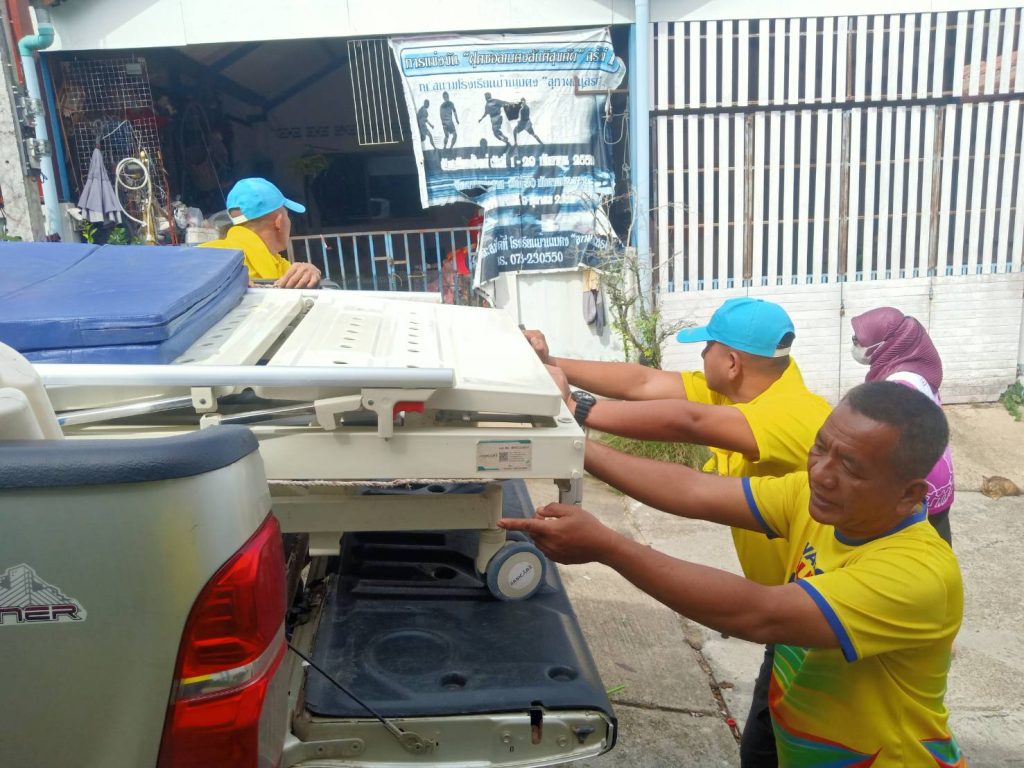 พร้อมชุดจิตอาสาชุมชนสัมพันธ์ สภ.ยะรม ร่วมกับ ร่วมกับ ผอ.สต.บ้านราโมง อสม.ประจำหมู่บ้าน ลงพื้นที่พบปะเยี่ยมเยียน ผู้ป่วยติดเตียง พร้อมมอบเตียงและวีลแชร์ที่ยืมใช้ของ อบต.ยะรม ให้กับผู้ป่วยใช้ประโยชน์พักรักษาตัวที่บ้าน