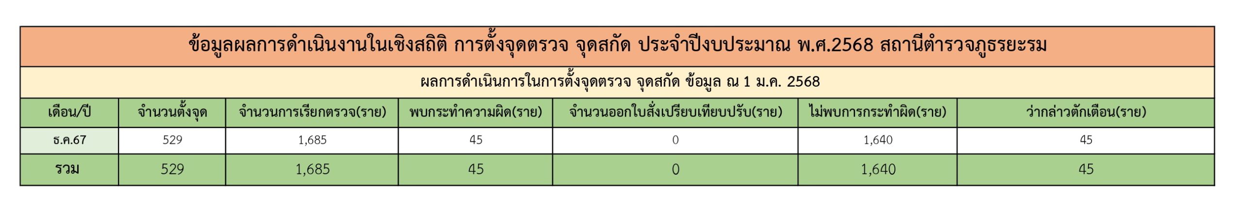 ข้อมูลผลการดำเนินงานในเชิงสถิติ การตั้งจุดตรวจ จุดสกัด เดือน ธันวาคม 2567