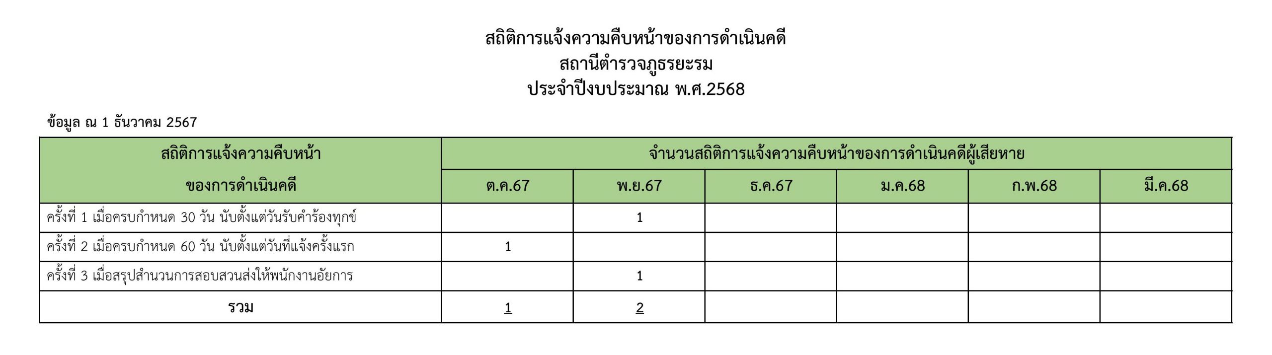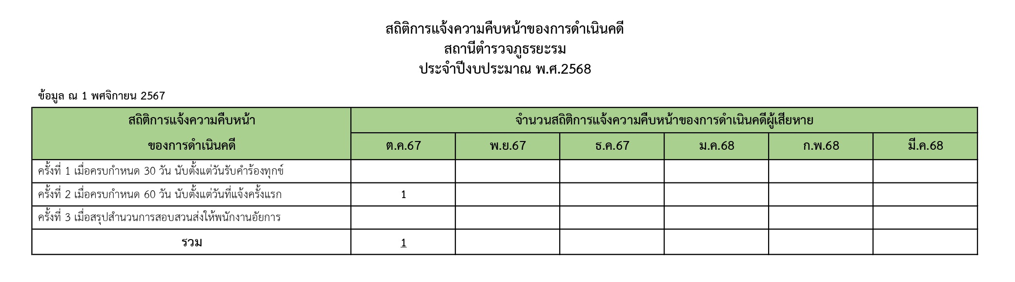ข้อมูลสถิติการแจ้งความคืบหน้าของการดำเนินคดีผู้เสียหาย เดือน ตุลาคม 2567