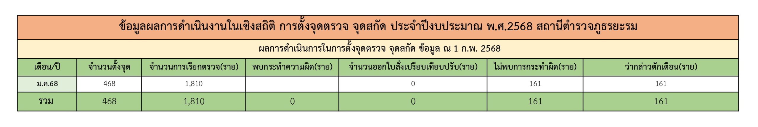 ข้อมูลผลการดำเนินงานในเชิงสถิติ การตั้งจุดตรวจ จุดสกัด เดือน มกราคม 2568