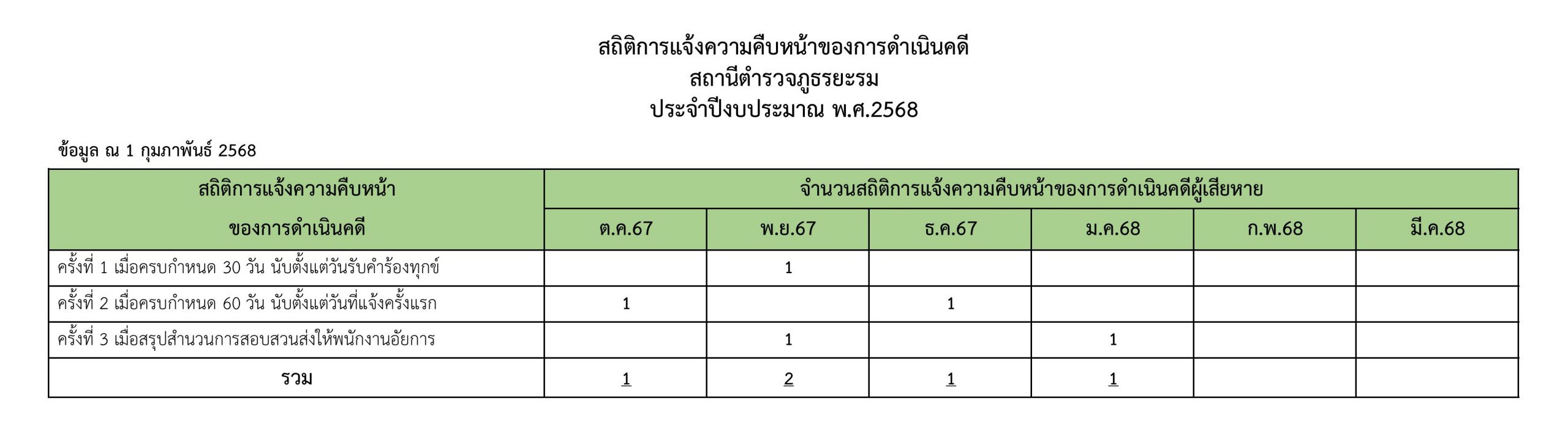 ข้อมูลสถิติการแจ้งความคืบหน้าของการดำเนินคดีผู้เสียหาย เดือน กุมภาพันธ์ 2568