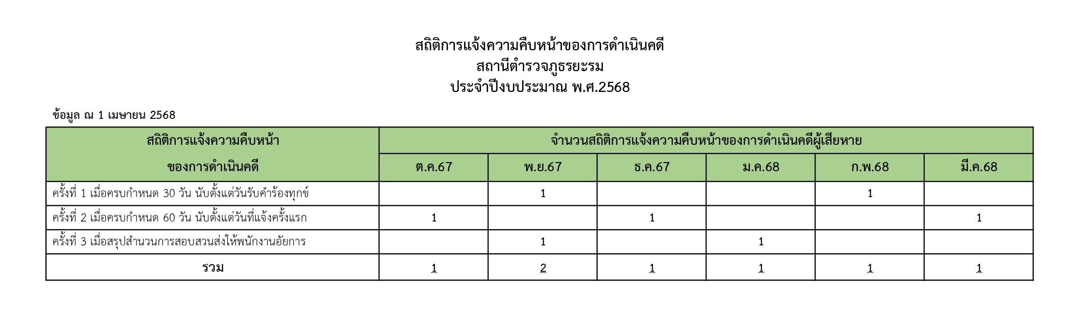 ข้อมูลสถิติการแจ้งความคืบหน้าของการดำเนินคดีผู้เสียหาย เดือน มีนาคม 2568