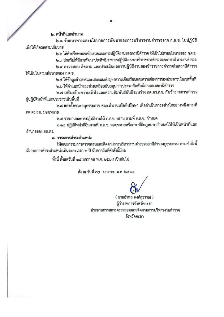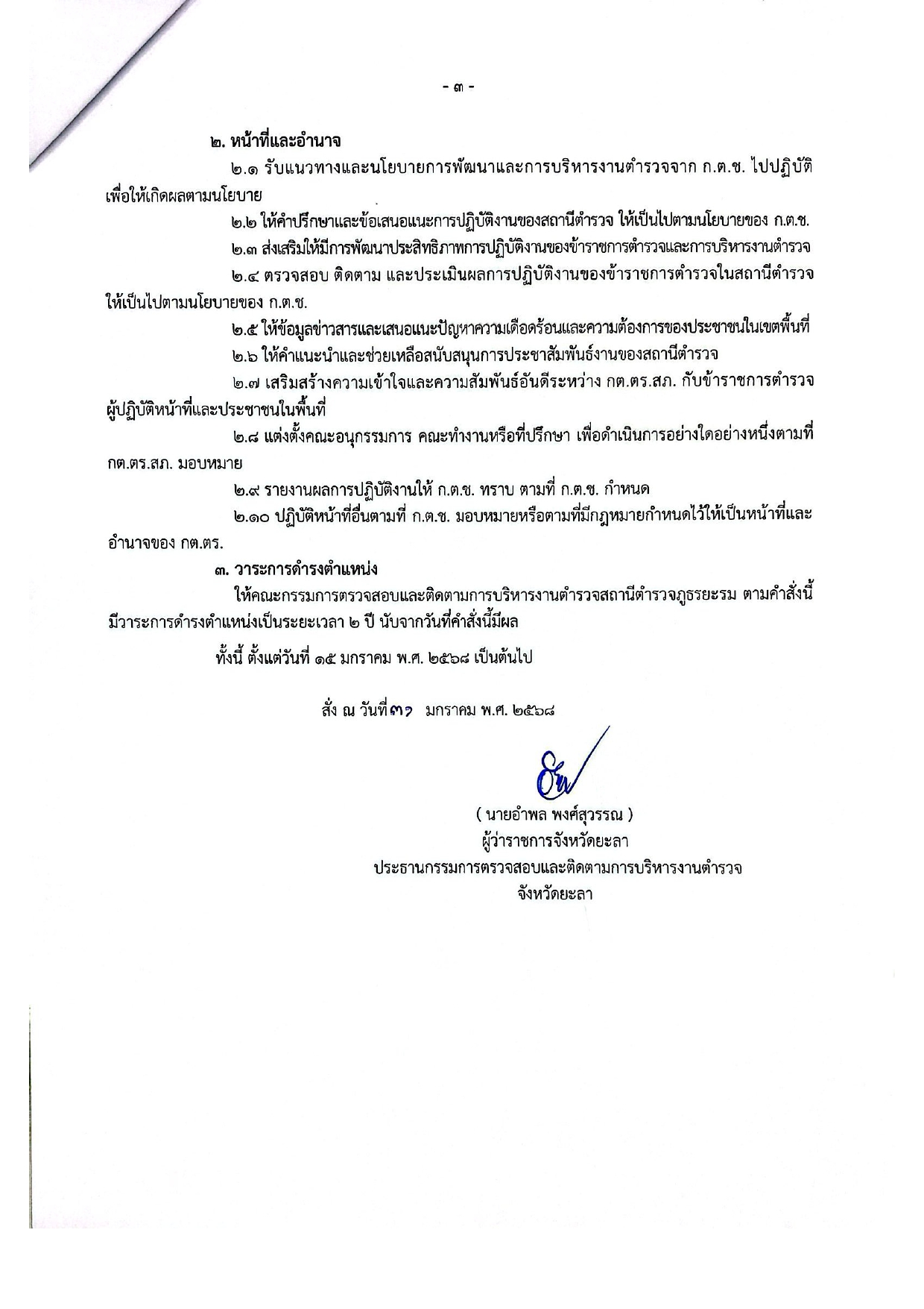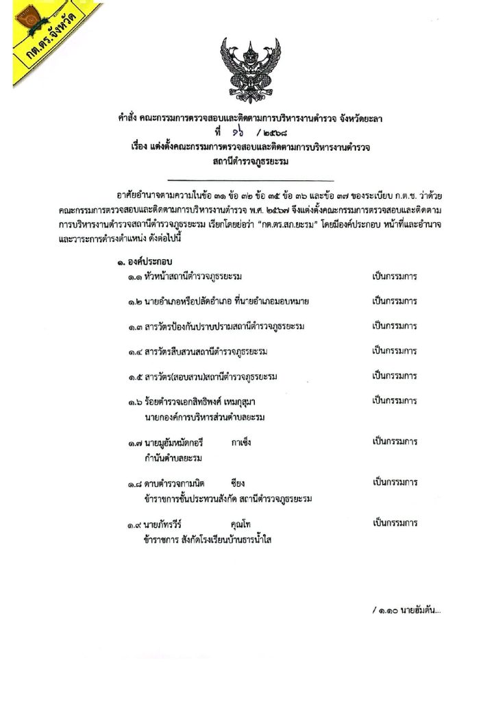 คำสั่ง แต่งตั้งคณะกรรมการตรวจสอบและติดตามการบริหารงานตำรวจ สถานีตำรวจภูธรยะรม