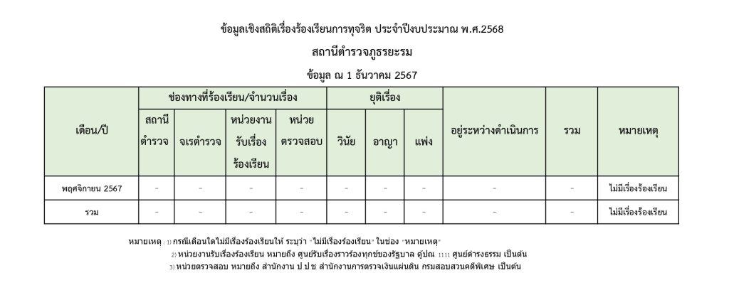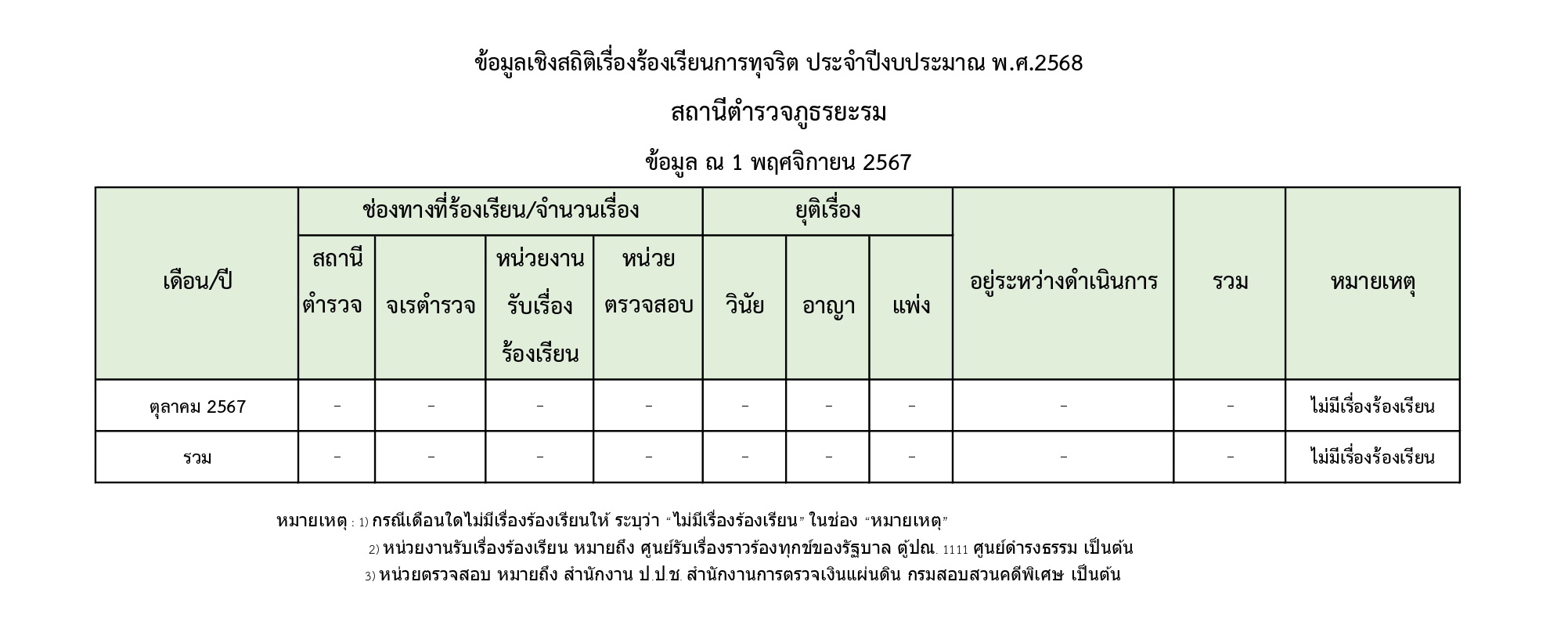 ข้อมูลเชิงสถิติเรื่องร้องเรียนการทุจริต เดือน พ.ย.67