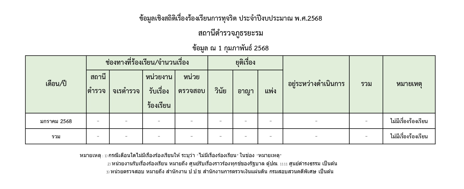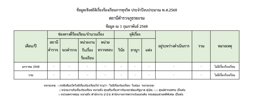 ข้อมูลเชิงสถิติเรื่องร้องเรียนการทุจริต เดือน ม.ค.68