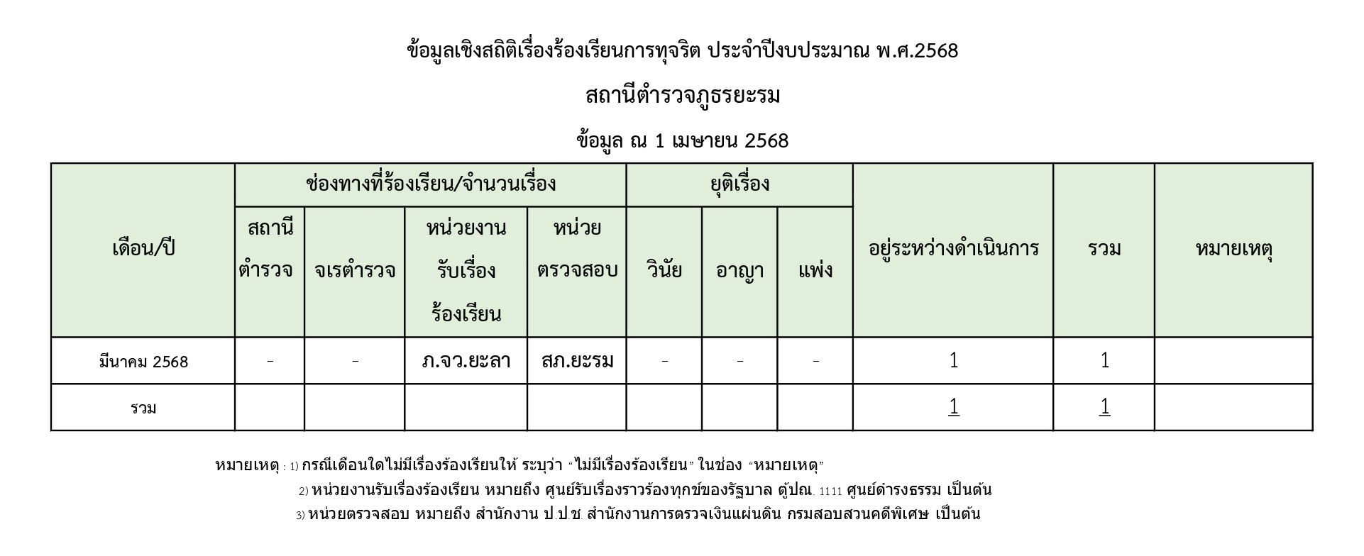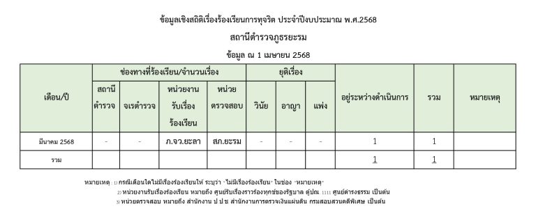 ข้อมูลเชิงสถิติเรื่องร้องเรียนการทุจริต เดือน มี.ค.68