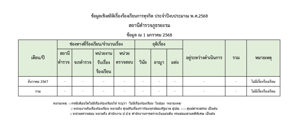 ข้อมูลเชิงสถิติเรื่องร้องเรียนการทุจริต เดือน ธ.ค.67