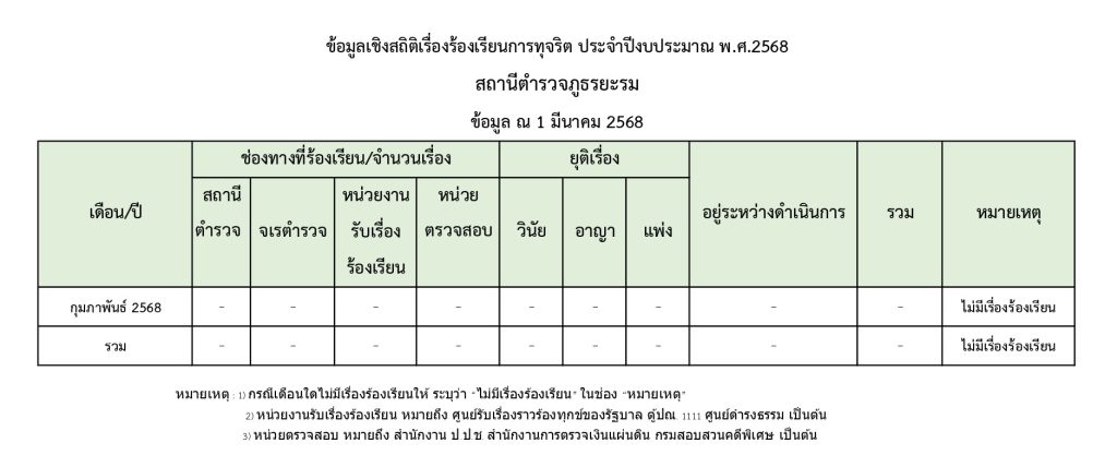 ข้อมูลเชิงสถิติเรื่องร้องเรียนการทุจริต เดือน ก.พ.68